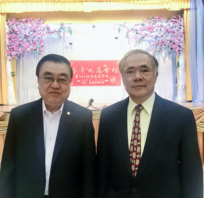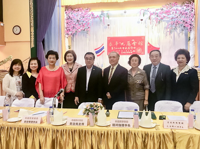 泰華九屬會館首長第五六六次聚餐會於2019年1月5日星期六中午十一時在泰國廣肇會館轄下廣肇學校禮堂舉行,由泰國廣肇會館值月做東。 出席聚餐會的泰國廣肇會館首長有:理事長關鴻強,副理事長:關長英博士、何德勝、黃慧娟、何雪芳、梁卿卿、駱世才、蘇桂蓉,泰文秘書余東海,副泰文秘書莫遠國,常務理事梁福海,中文秘書梁順愛,理事:梁順煥、關滿英、麥利和、吳志優、梁偉星、黃同發、方維新、朱懿芳、關興好。 聚餐會於十一時開始,值月做東的泰國廣肇會館理事長關鴻強主持餐會致開會詞: “尊敬的泰國潮州會館主席黄迨光博士 尊敬的泰華九屬會館各位正副首長 尊敬的泰國廣西總會永遠名譽主席李銘如女士 各位正副總幹事、各位新聞界代表、女士們、先生們 大家中午好 ! 今天是泰華九屬會館首長第566次聚餐會,輪值由本會館做東,感謝各位於百忙中抽空前來参加聚會。 首先我要恭賀泰國廣西總會成功選舉換屆, 李銘如女士榮陛永遠名譽主席, 廣西總會在閣下領導下業績顯赫,名揚四海,有目共睹。閣下服務九屬會館數十年,不辭勞苦,盡心盡力,不愧為女中豪傑,僑領階模!第十九屆主席梁忠翥年青有為,學識淵博,飲譽僑社,廣西總會由閣下統領實屬咸慶得人, 貴會會務定當一日千里,再創輝煌。 廣肇會館140年来服務僑社,努力不懈,貢獻社會公益事業、圓融鄉梓不遺餘力。為了使社會大家對居泰廣肇人有更深認識,本會館及商會預算在明年舉辦廣府文化博覽會,將廣府人的文化風俗、起居飲食及生活習慣向各界展示,計劃好之後,我們會把日期、時間和地點通知各位,邀請各位蒞臨指導。 最後,我誠心祝願各位身體健康,家庭美滿,生意興隆,財源廣進,謝謝各位!” 在聚餐會上,泰國潮州會館主席、泰華九屬會館總主席黃迨光博士向擔任泰華九屬會館二十九年秘書長、泰國廣西總會永遠名譽主席李銘如女士頒發獎盾,向熱心贊助九屬教師獎勵金十萬銖的泰國客家總會副理事長胡志雄頒發獎盾。